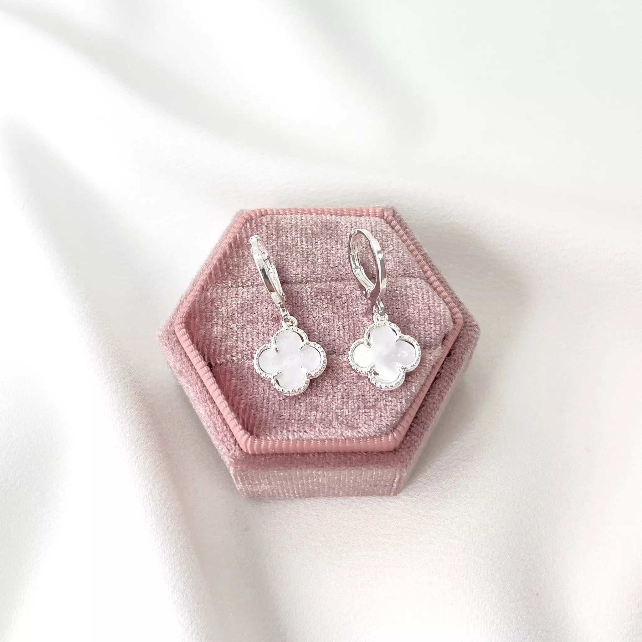 Argolinhas com pingente trevo, inspiração, madrepérola.