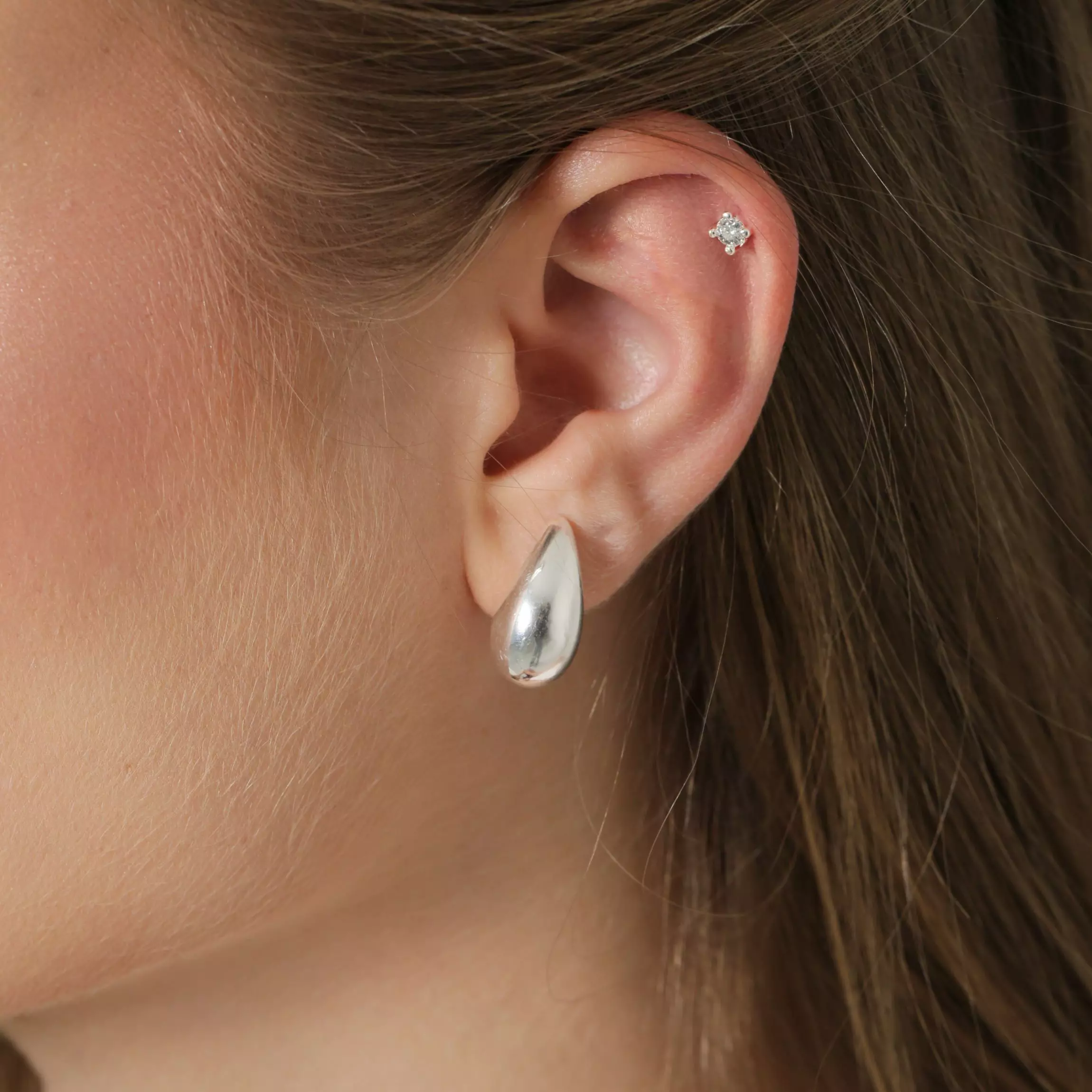 Brincos em estilo orgânico, em formato de gota, acabamento liso.