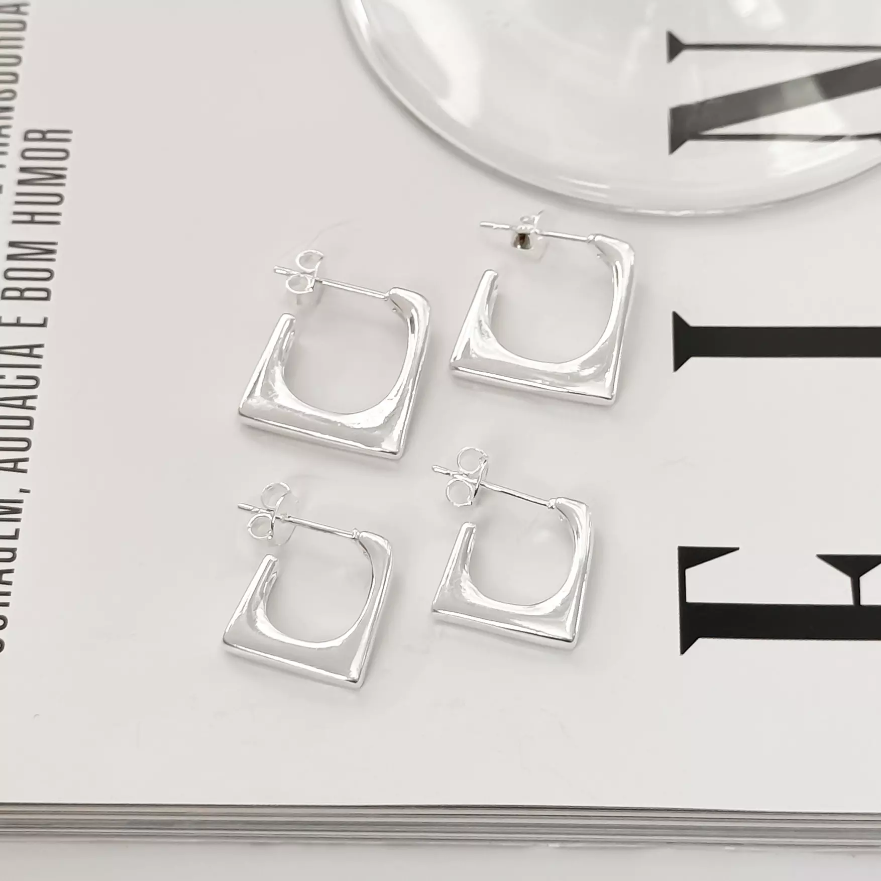 Conjuntto com 2 pares de argolas quadradas e lisas.
