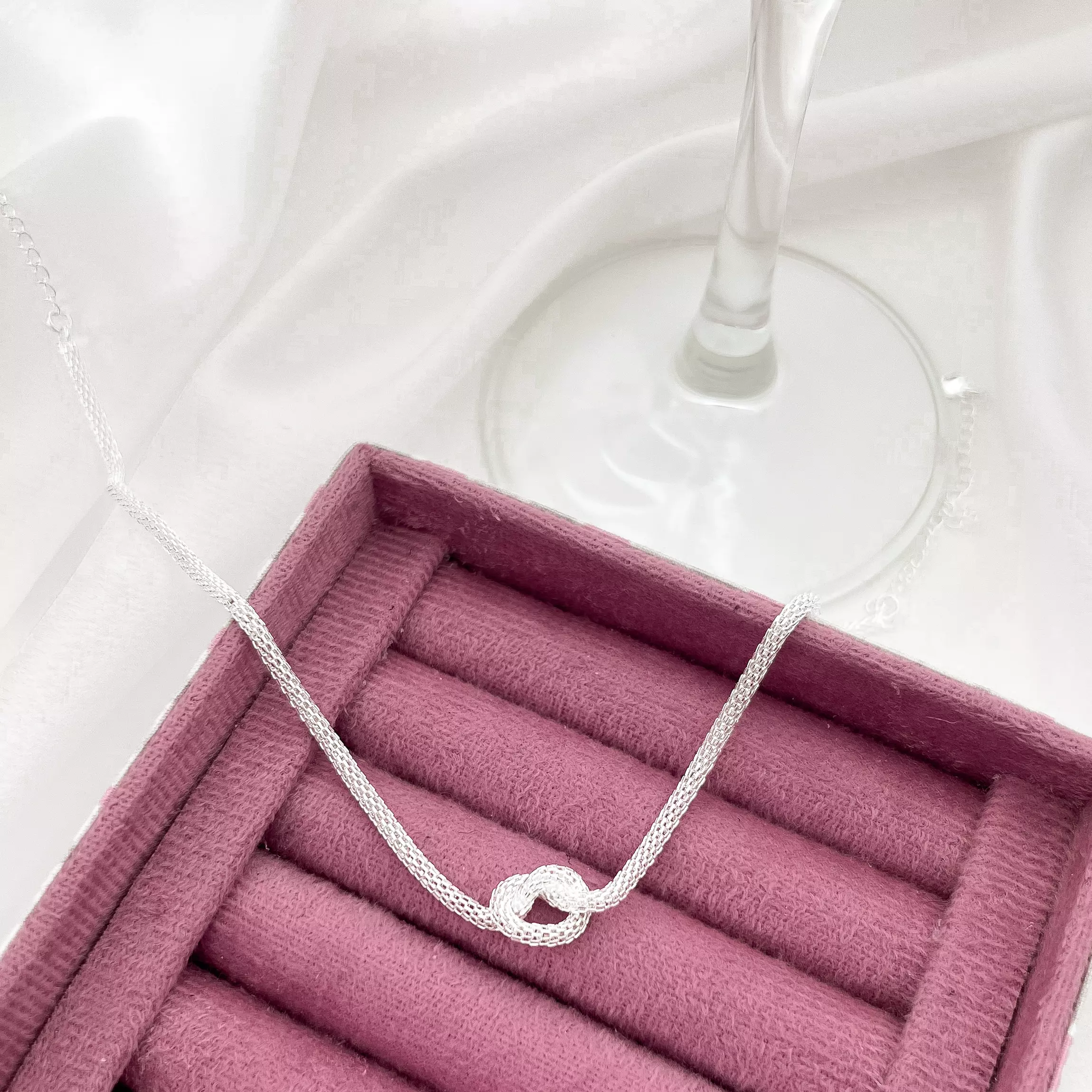 Pulseira com malha oca e detalhe em nó. Tamanho: 20 cm (16 cm + 4 cm de extensor). Material: Peça banhada a prata (50 milésimos), com verniz protetor e hipoalergênico.